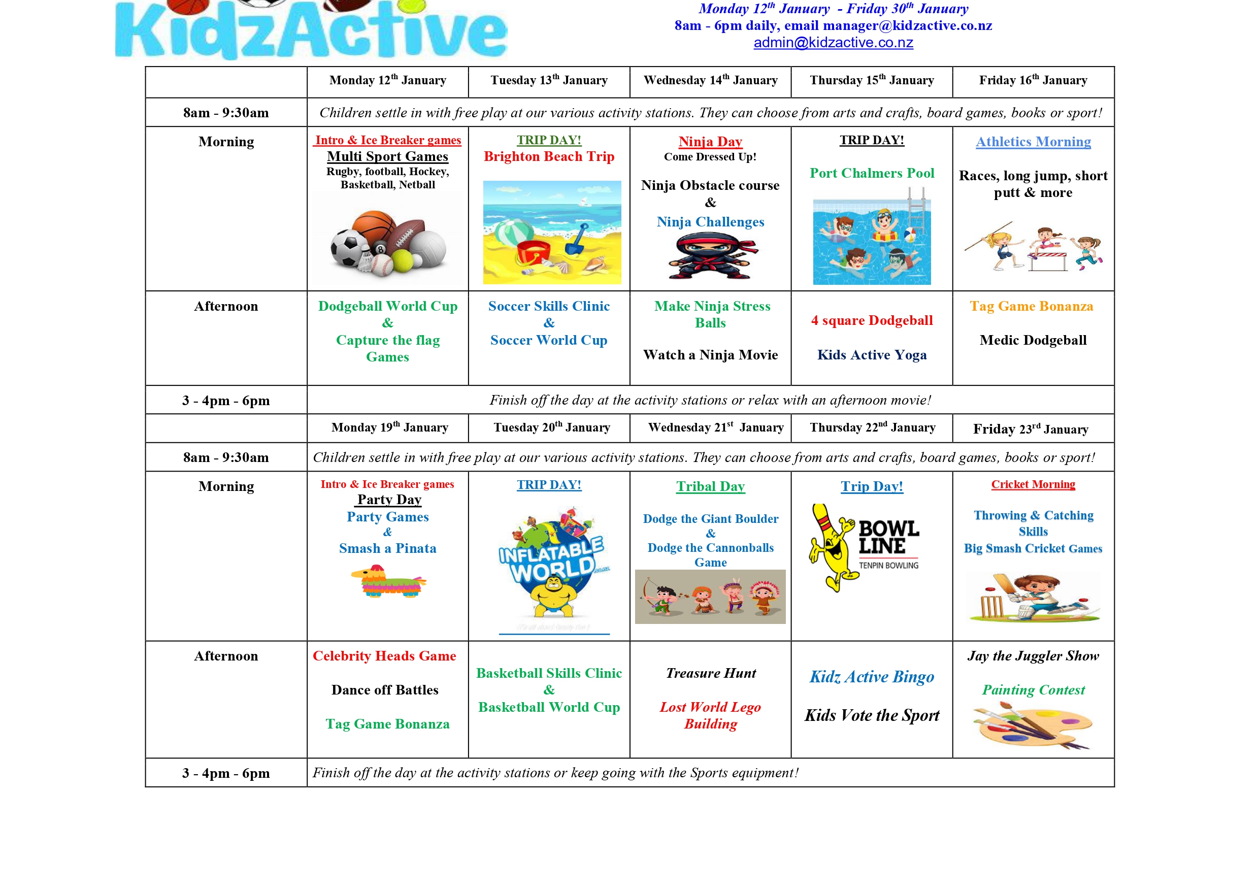 Our holiday programme is perfect for children who like to be active as children have plenty of opportunities to develop their sports skills in rugby, football, basketball, netball, cricket & hockey. Kids will also have the opportunity to take part in structured arts & crafts & other themed based days. We also offer 2-3 trip days per week to places such as Leap, Inflatable World, Cinemas, Bowl Line, Beach Trips, Moana Pool and plenty more exciting day outs.